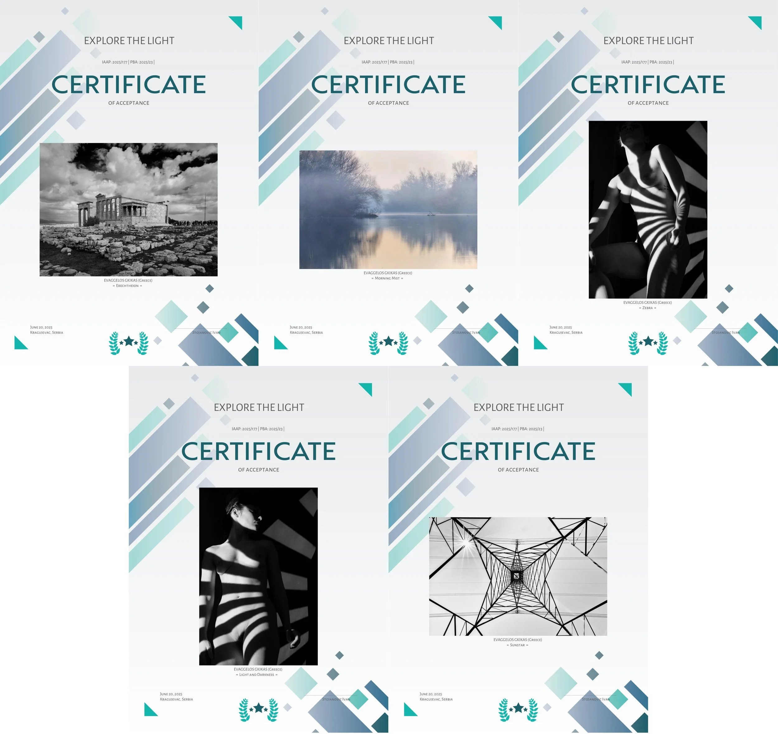 Certificate of Acceptance in the International Exhibition Explore the Light